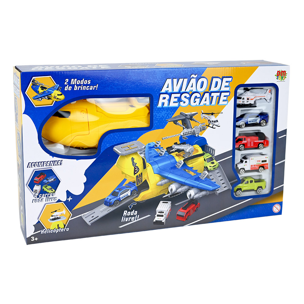 O Avião Resgate é muito legal e cheio de detalhes, vem com quatro carros e um helicóptero. O avião tem heliporto e rampa para saída de carga! Brincar fica mais divertido com o Avião Resgate!